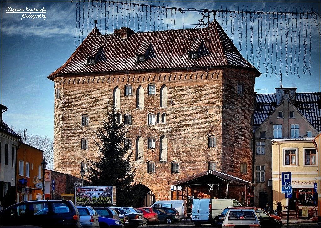To jedyna zachowana z trzech bram miejskich, a właściwie przedbramie zwane Wysoką Bramą. Jest to najbardziej monumentalna budowla tego typu na Warmii i Mazurach, reprezentująca styl gotycki, zaliczona do zabytków klasy pierwszej. Zbudowano ją w latach 1466-78, górną część przemurowano około 1850 roku. Zabytek ma 4 piętra, a po bokach wyrastają dwie półokrągłe baszty, połączone ze sobą głównym korpusem bramowym. W środkowej części bramy znajduje się ostrołukowy przejazd. Z bramą właściwą dawniej łączyło ją murowane przejście o długości około 20 m.